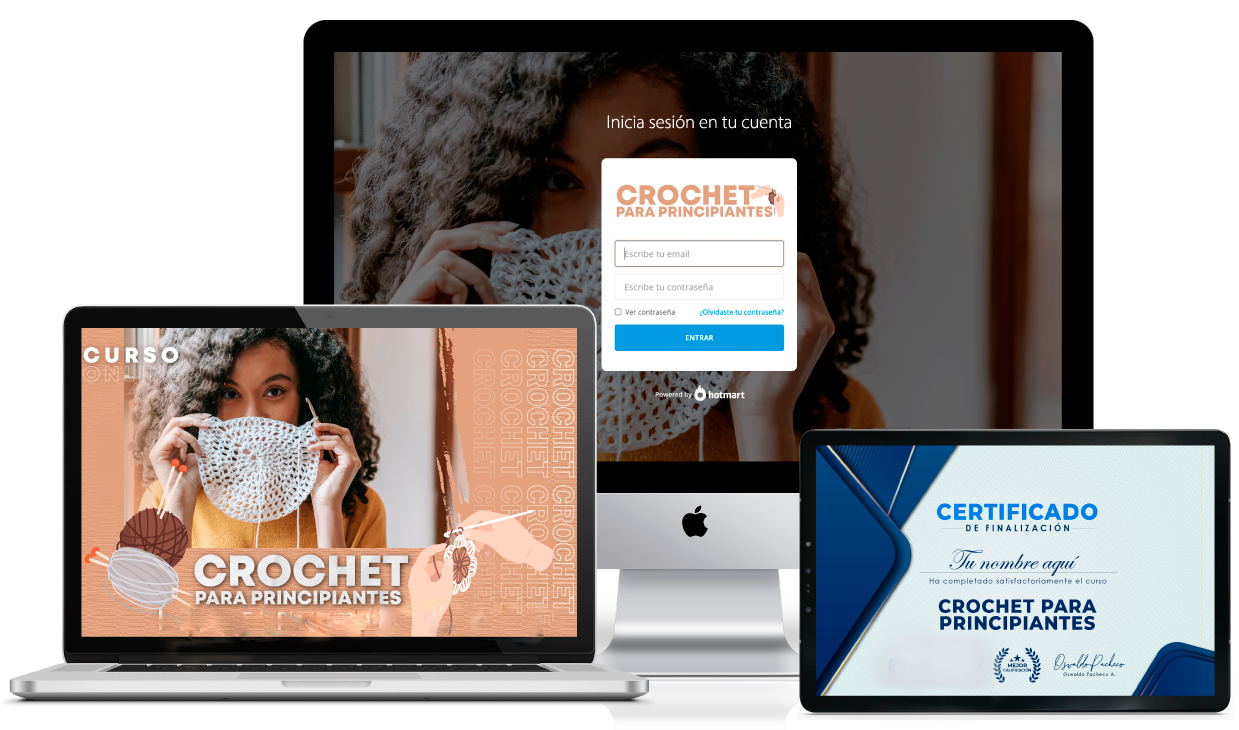 Pasar desde lo más básico a un nivel avanzado en la técnica de tejido crochet, a tu propio ritmo y sin salir de casa.